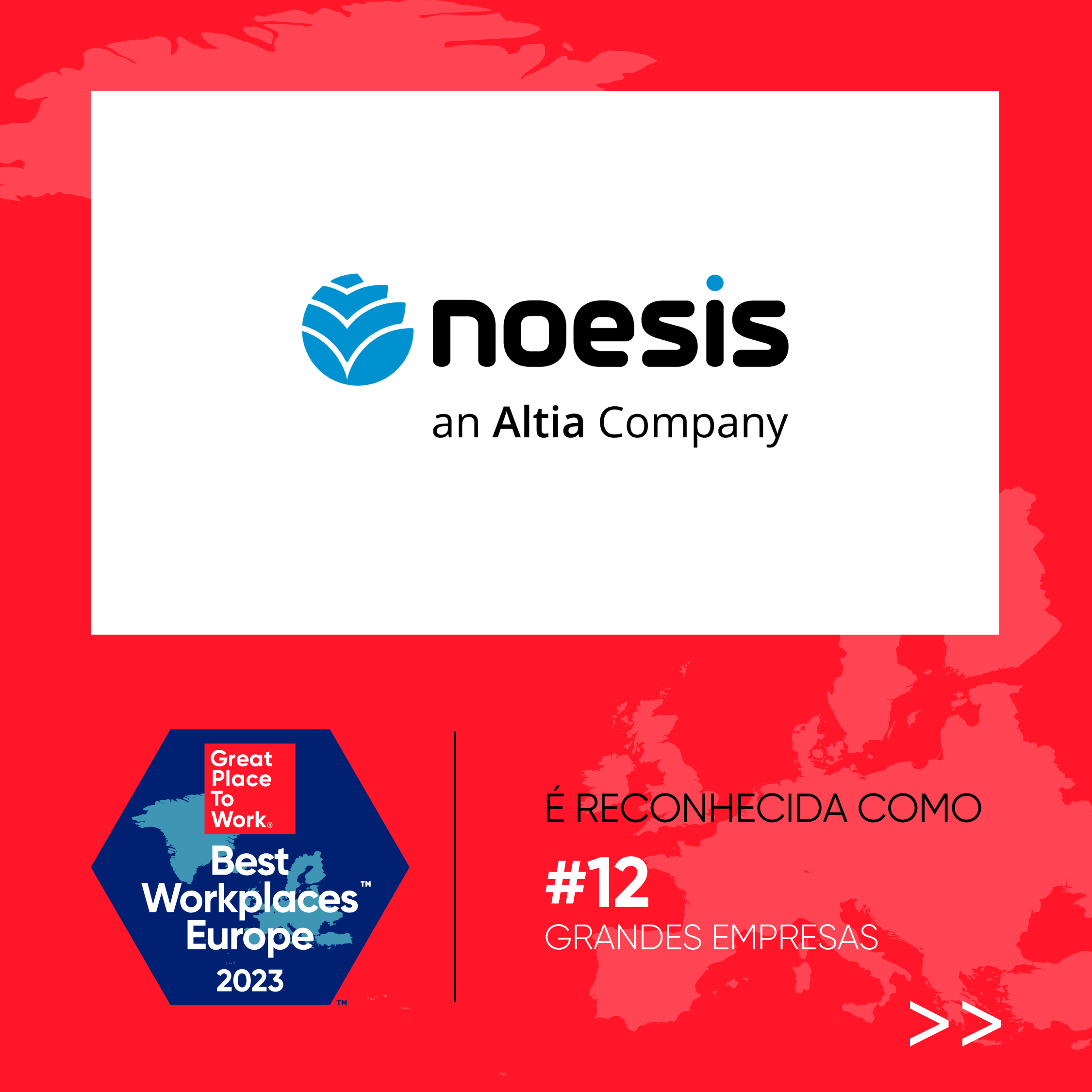 Depois de sermos considerados um Best Workplace em Portugal por dois anos consecutivos, 2022 e 2023, a Noesis está novamente entre os Melhores Lugares para se trabalhar na Europa. Segundo a classificação da Great Place To Work®, conquistámos a 12.ª posição na dimensão das Grandes Empresas com mais de 500 colaboradores, ao sermos reconhecidos, não só pela nossa cultura de confiança, mas também pelo excelente ambiente laboral. Somos a única empresa portuguesa neste ranking que envolve 50 organizações.