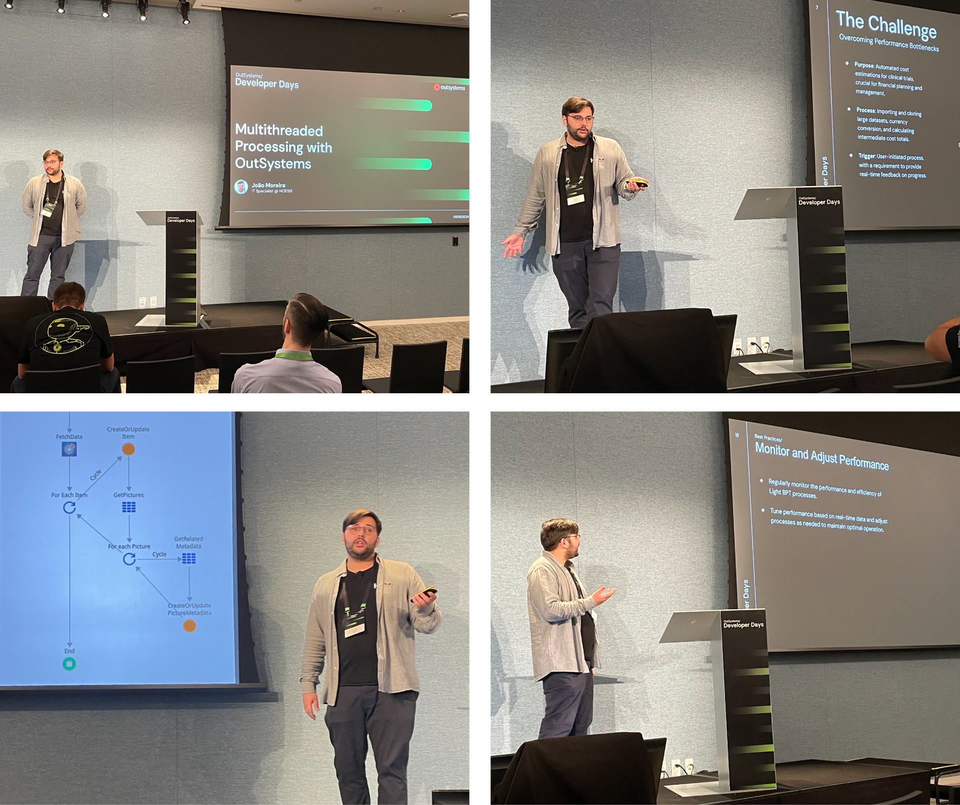 João Moreira, IT Specialist (SA) da Noesis US Corp, partilhou a sua experiência numa talk intitulada "The Pros and Cons of Multithreaded Processing with OutSystems".